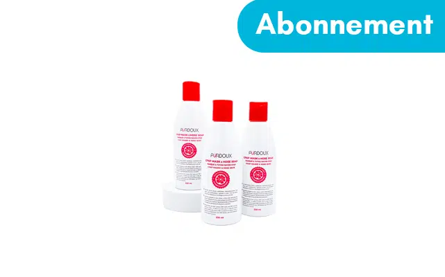 Appliquez une dose de savon Pürdoux, nettoyez et rincez les élements.