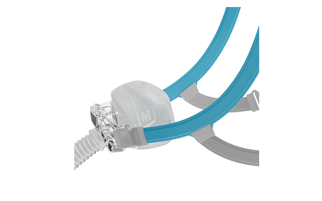 Le harnais SwingFit™ pivote aisément autour de la tête et s’aligne automatiquement sur le cadre du masque, assurant une mise en place rapide et stable.